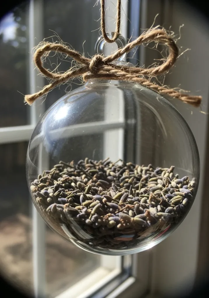 This clear glass ornament is filled with dried lavender buds, and honestly, it’s the prettiest way to bring calm into all the holiday chaos. The twine bow keeps it earthy and natural, while the soft purple tones peek through just enough to make it stand out.