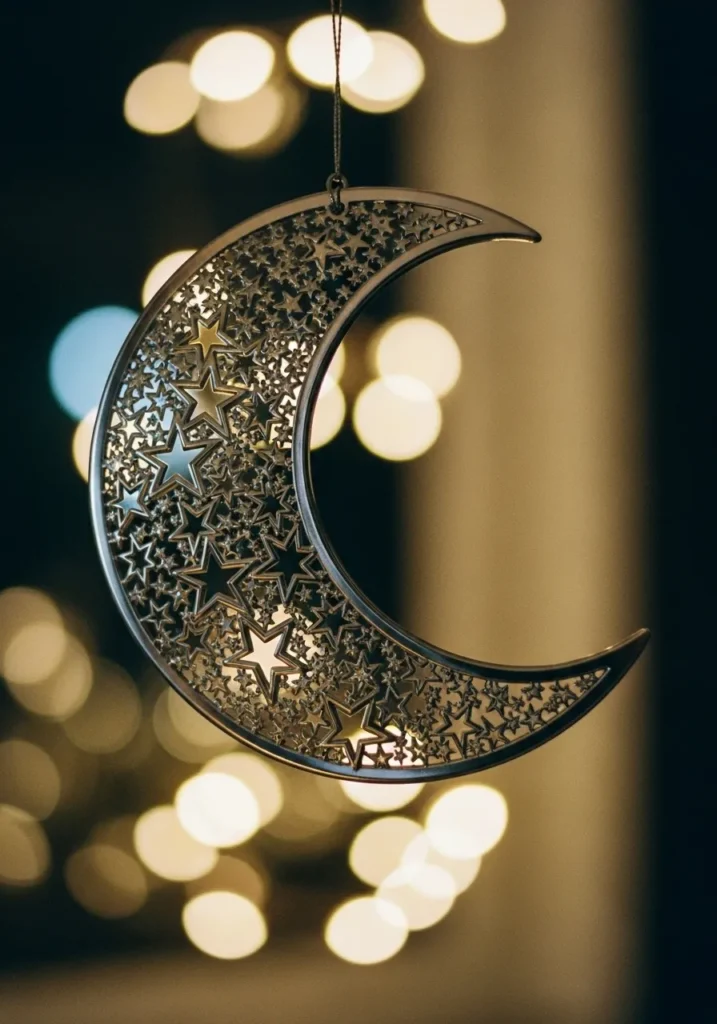 This silver crescent moon ornament feels both whimsical and elegant. The tiny cut-out stars shimmer under the lights, giving it that magical glow that instantly makes the tree feel more enchanting.