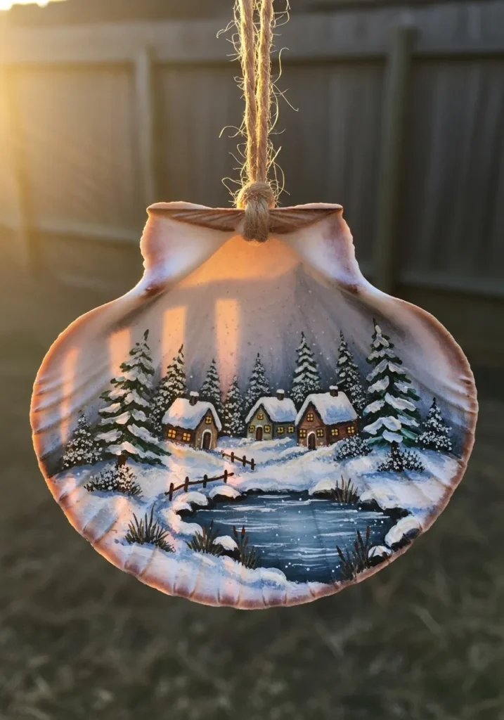 This seashell ornament is one of the most unique pieces I’ve ever seen. A cozy snowy village is painted right onto the shell, turning something coastal into something wonderfully Christmassy. The natural curves of the shell make it feel like art and nostalgia wrapped into one.