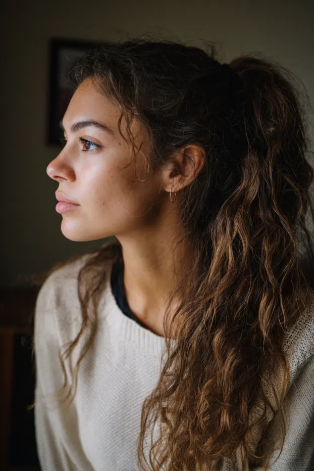 Soft Brunette Curly Ponytail With Natural Volume