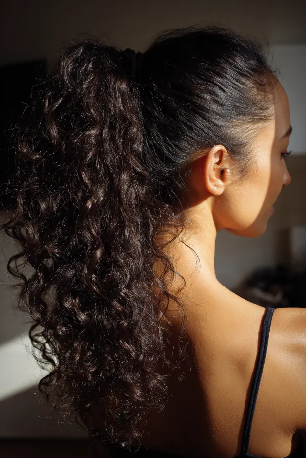 Sleek High Curly Ponytail With Defined Texture