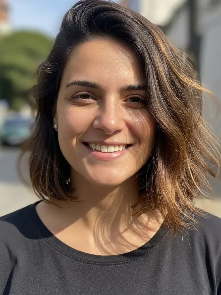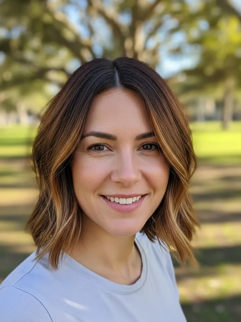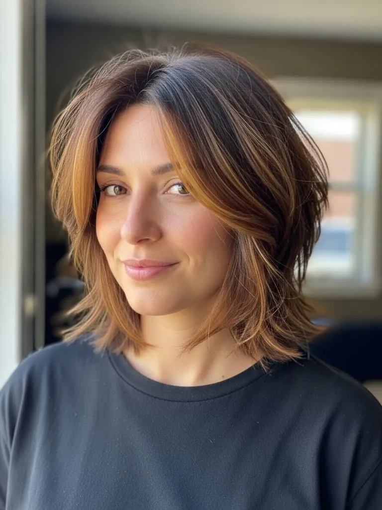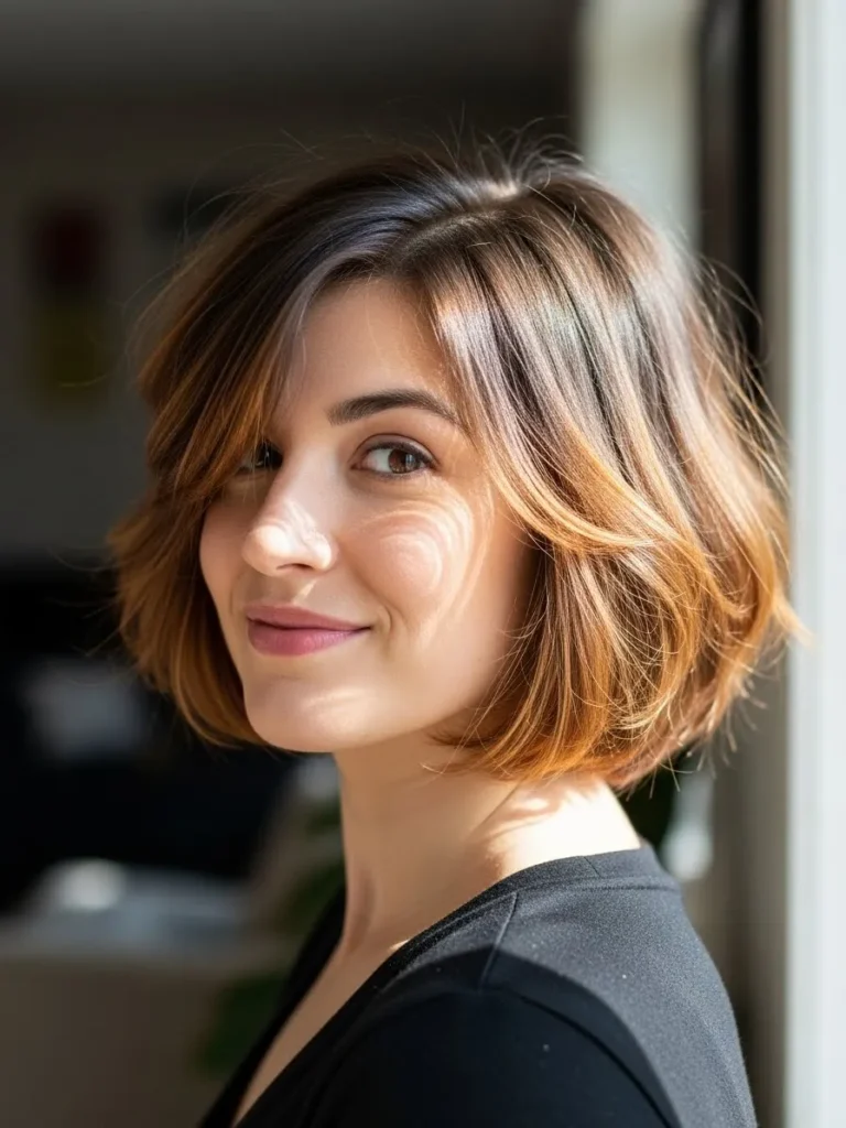 I love how energizing this style feels on me. The texture keeps things lively and the caramel pieces brighten my skin tone in the nicest way. It is the kind of bob that makes me look more awake even on mornings when I definitely am not.