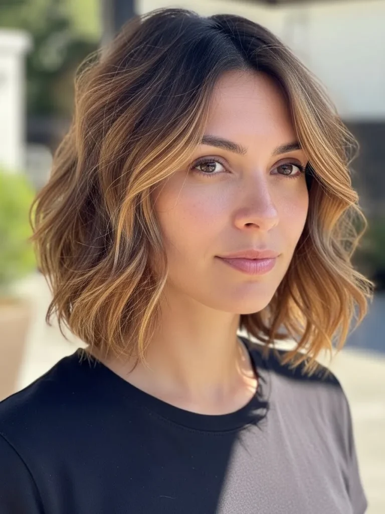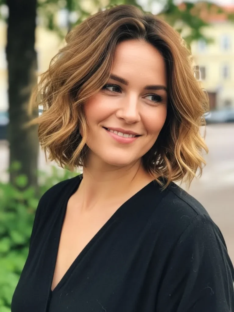 Breezy Choppy Bob With Soft Caramel Waves