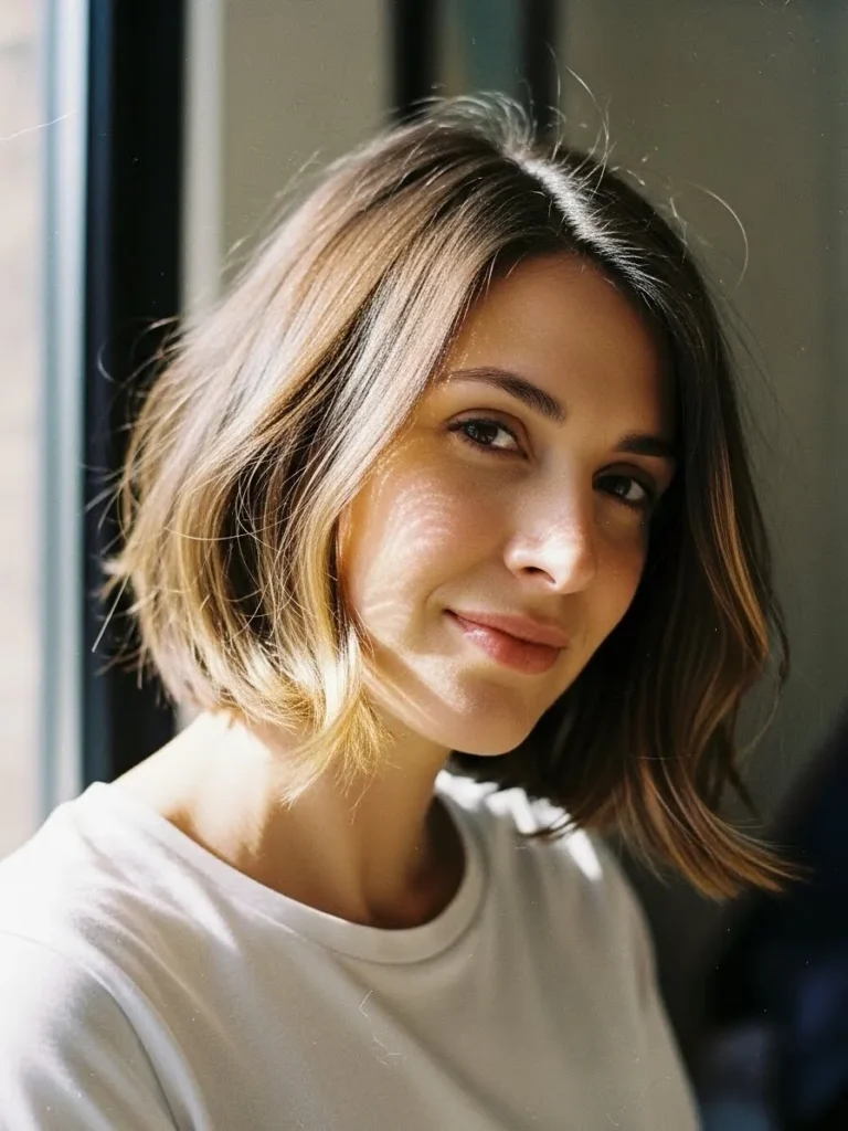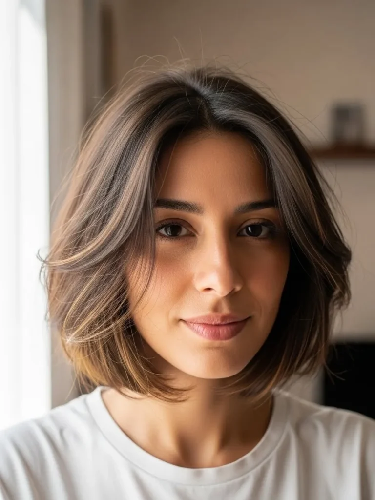 I find this style so flattering because it adds glow without requiring much fuss. The highlights lift my features and the airy layers keep everything from falling flat. It is one of those bobs that looks polished but still relaxed which is exactly what I love on busy days.