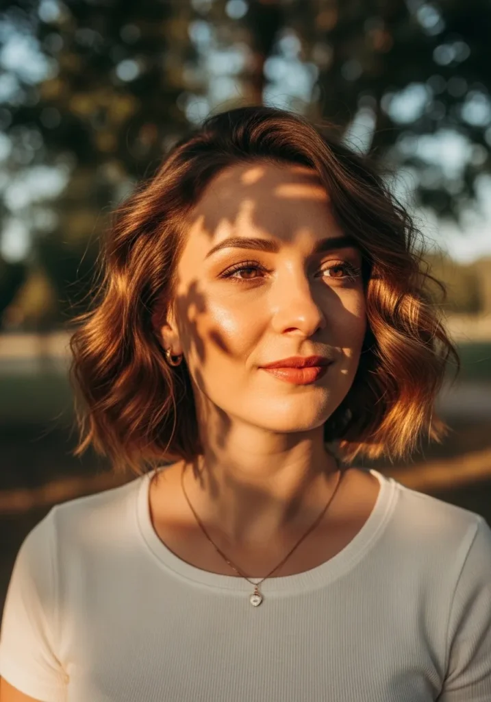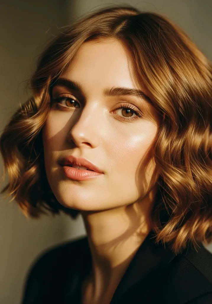 I love how this kind of bob gives my face a little lift without me having to do much at all. The waves frame the cheeks in such a flattering way and the warm tones make my skin look brighter even on days when I’m running on coffee and optimism. It feels polished but still relaxed which is honestly my favorite balance.