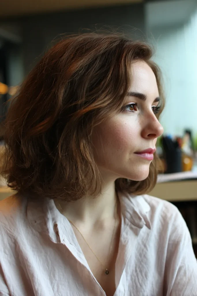 There are some who love a look that transitions perfectly from a morning board meeting to a post-work happy hour. I think this specific cut is so flattering because it highlights the jawline and brings so much life to the eyes with those warm autumnal colors. If you are searching for a style that feels polished yet possesses a bit of that cool girl edge, then this tousled bob is a total win for your work week rotation.